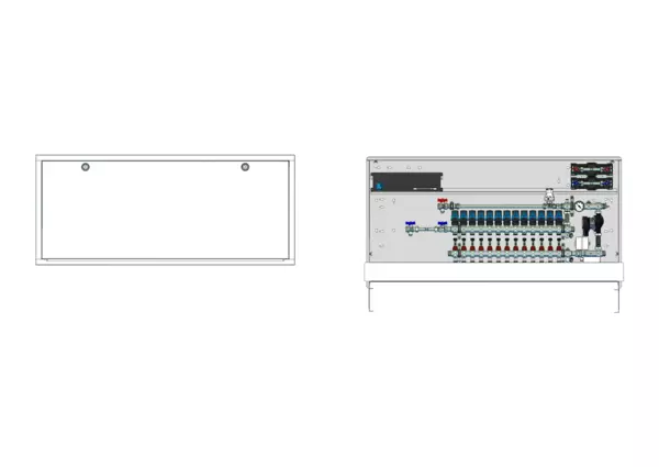 strawa Comfort Regelstation FBR-18-H-W2-WMZ-C69-EGO 13 Hkr.,BxHxT: 1500x775x122 mm, Festwert 20-50°C m. Pump, hor. AG m. WMZ, Verteil m. DFA min/max+THV f. EGO, vorm. EGO+Klemml. m. Vorverdr., WZ-Strecke TW kalt+warm, CUP-Schrank m. Frontbl. RAL9016