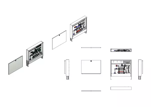 strawa Comfort Regelstation FBR-63-V-WMZ-CA-E 5 Hkr.,BxHxT: 882x710x125 mm, Festwert 20-50°C mit Pumpe, vert. AG m. WMZ, Verteiler mit DFA 0-3 l/min + THV M30x1,5, , vorm. Stellantr. + Klemml. m. Vorverdr., Comfort-AP-Schrank in RAL 9016