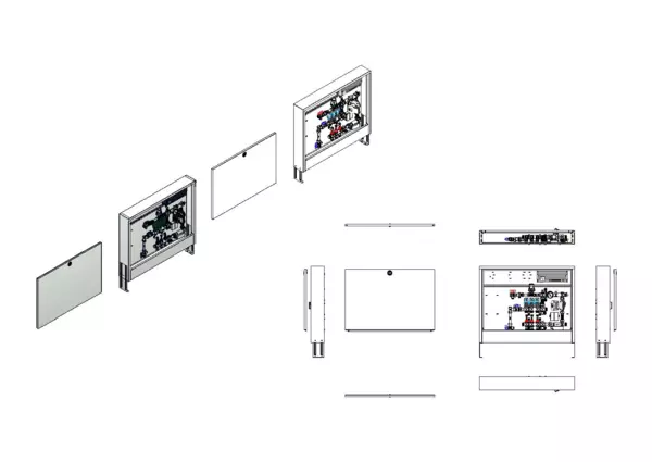 strawa Comfort Regelstation FBR-18-V-WMZ-CA-EGO 3 Hkr.,BxHxT: 882 x 710 x 125 mm, Festwert 20-50°C mit Pumpe, vert. AG m. WMZ, Verteiler mit DFA min/max + THV f. EGO, vorm. EGO-Regel. + Klemml. m. Vorverdr., Comfort-AP-Schrank in RAL 9016