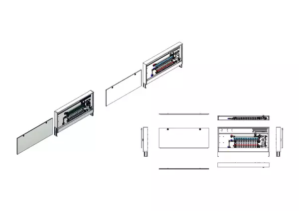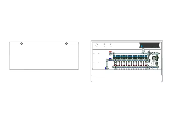 strawa Comfort Regelstation FBR-18-V-WMZ-CA-EGO 14 Hkr.,BxHxT: 1482 x 710 x 125 mm, Festwert 20-50°C mit Pumpe, vert. AG m. WMZ, Verteiler mit DFA min/max + THV f. EGO, vorm. EGO-Regel. + Klemml. m. Vorverdr., Comfort-AP-Schrank in RAL 9016