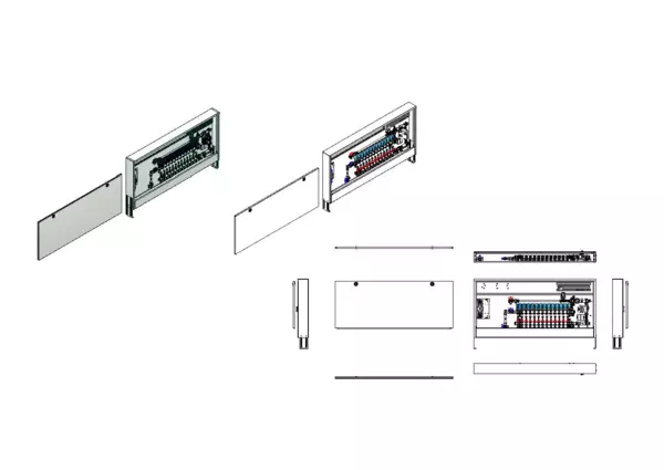 Die Regelstation für Flächenheizung ist mit einer Festwertregelung 20-50 °C ausgestattet. Die im Aufputzschrank montierte Regelgruppe umfasst eine Umwälzpumpe, einen Edelstahlverteiler mit absperrbaren Durchflussanzeigern und Ventileinsätzen für EGO-Schnellverschluss, sowie eine vertikale Anschlussgarnitur mit Wärmezählerverrohrung. Zusätzlich ist eine Wasserzählereinbaustrecke für Trinkwasser kalt, vormontierte und vorverdrahtete EGO-Regelantriebe auf vormontierter Klemmleiste.