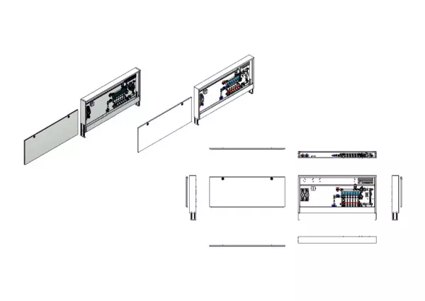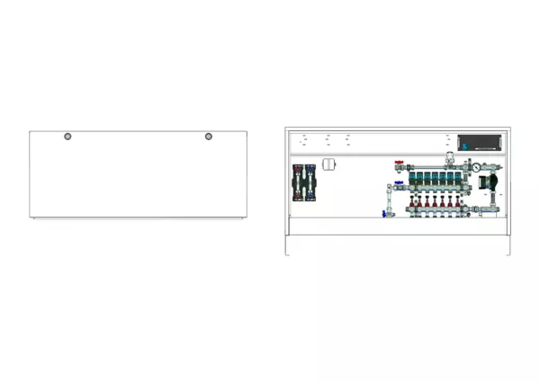 strawa Comfort Regelstation FBR-18-V-W2-WMZ-CA-EGO 7 Hkr.,BxHxT: 1482x710x125 mm, Festwert 20-50°C m. Pumpe, vert. AG m. WMZ, Verteiler mit DFA min/max+THV f. EGO, vorm. EGO-Regel.+Klemml. m. Vorverdr., WZ-Strecke TW kalt+warm CAP-Schrank RAL9016