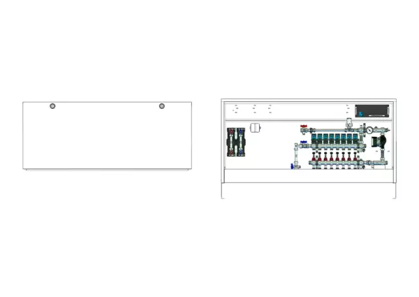 strawa Comfort Regelstation FBR-18-V-W2-WMZ-CA-EGO 8 Hkr.,BxHxT: 1482x710x125 mm, Festwert 20-50°C m. Pumpe, vert. AG m. WMZ, Verteiler mit DFA min/max+THV f. EGO, vorm. EGO-Regel.+Klemml. m. Vorverdr., WZ-Strecke TW kalt+warm CAP-Schrank RAL9016