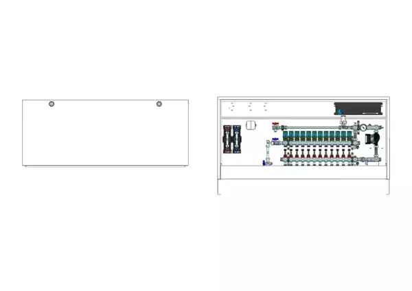 strawa Comfort Regelstation FBR-18-V-W2-WMZ-CA-EGO 12 Hkr.,BxHxT: 1482x710x125 mm, Festwert 20-50°C m. Pumpe, vert. AG m. WMZ, Verteiler mit DFA min/max+THV f. EGO, vorm. EGO-Regel.+Klemml. m. Vorverdr., WZ-Strecke TW kalt+warm CAP-Schrank RAL9016