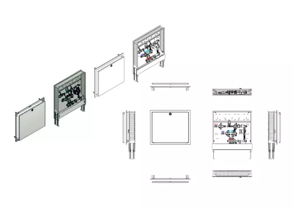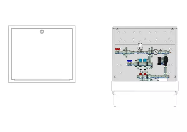 strawa Comfort Kompakt-Regelstation FBR-18-HT1-H-C69 2 Hkr.,BxHxT: 750x775x122 mm, Festwert 20-50°C mit Pumpe, 1x Hochtemperaturabgang, horz. AG o. WMZ, Verteiler m. DFA min/max + THV für EGO, Comfort-UP-Schrank m. Frontbl. RAL 9016