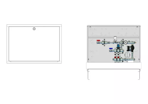 strawa Comfort Kompakt-Regelstation FBR-18-HT1-H-C69-EGO 1 Hkr.,BxHxT: 750x775x122 mm, Festwert 20-50°C m. Pumpe, 1x HT-Abgang, horz. AG o. WMZ, Verteiler m. DFA min/max + THV f EGO, vorm. EGO-Regel.+Klemml. m. Vorverdr., CUP-Schrank Frontbl RAL9016