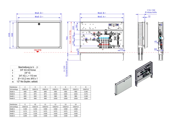 strawa Comfort Kompakt-Regelstation FBR-18-HT1-H-W1-WMZ-C69 10 Hkr.,BxHxT: 1200 x 775 x 122 mm, Festwert 20-50°C m. Pumpe, 1x HT-Abgang, horz. AG m. WMZ, Verteiler m. DFA min/max + THV f EGO, WZ-Strecke TW kalt, Comfort-UP-Schrank m. Frontbl. RAL9016