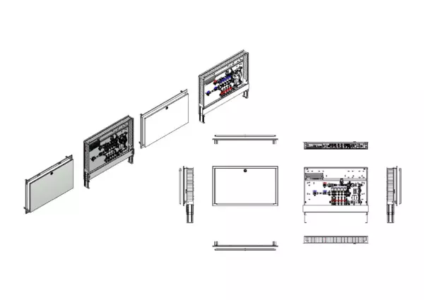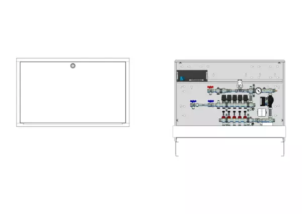 strawa Comfort Kompakt-Regelstation FBR-63-HT1-H-WMZ-C69-E 5 Hkr.,BxHxT: 1050x775x122 mm, Festwert 20-50°C m. Pumpe, 1x HT-Abgang, horz. AG m. WMZ, Verteiler m. DFA 0-3 l/min+THV M30x1,5, vorm. Stellantr., CUP-Schrank RAL 9016