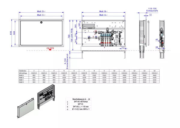strawa Comfort Kompakt-Regelstation FBR-18-HT1-H-WMZ-C69-EGO 9 Hkr.,BxHxT: 1200 x 775 x 122 mm, Festwert 20-50°C m Pumpe, 1x HT-Abg, horz. AG m. WMZ, Verteiler m. DFA min/max+THV für EGO, vorm. EGO-Regel., CUP-Schrank RAL 9016