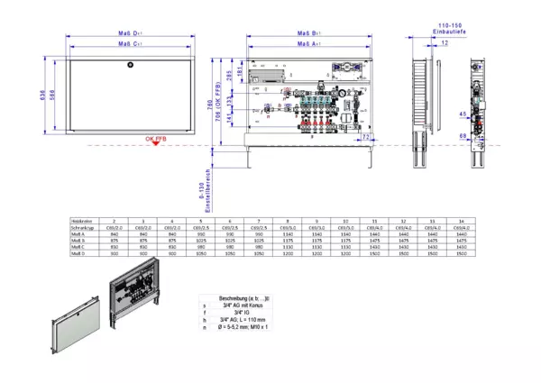 strawa Comfort Kompakt-Regelstation FBR-18-HT1-H-W1-WMZ-C69-EGO 14 Hkr.,BxHxT: 1500 x 775 x 122 mm, Festwert 20-50°C m Pum, 1x HT-Abg, horz. AG m. WMZ, Verteiler m. DFA min/max+THV für EGO, vorm. EGO-Regelantr., WZ-TW kalt, CUP-Schrank RAL9016