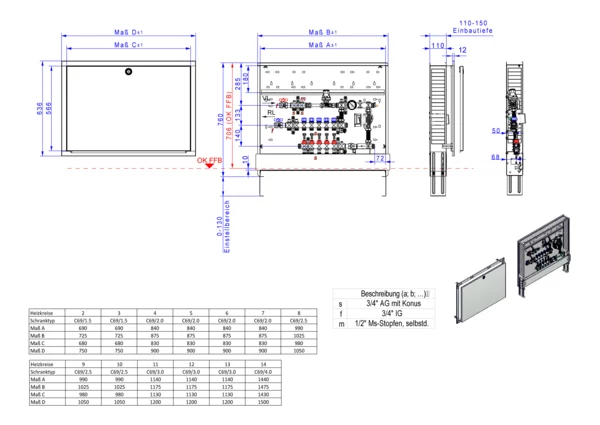 strawa Comfort Kompakt-Regelstation FBR-63-HT2-H-C69 10 Hkr.,BxHxT: 1050 x 775 x 122 mm, Festwert 20-50°C mit Pumpe, 2x Hochtemperaturabgang, horz. AG o. WMZ, Verteiler mit DFA 0-3 l/min + THV M30x1,5, Comfort-UP-Schrank m. Frontbl. RAL 9016
