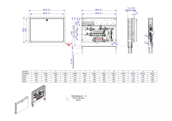 strawa Comfort Kompakt-Regelstation FBR-63-HT2-H-C69-E 4 Hkr.,BxHxT: 900 x 775 x 122 mm, Festwert 20-50°C m. Pumpe, 2x HT-Abg, horz. AG o. WMZ, Verteiler m. DFA 0-3 l/min+THV M30x1,5, vorm. Stellantr.+Klemml. m. Vorverdr., CUP-Schrank Frontbl. RAL9016