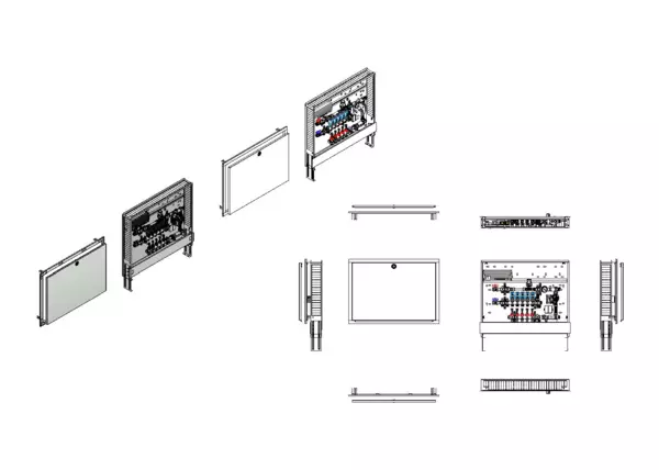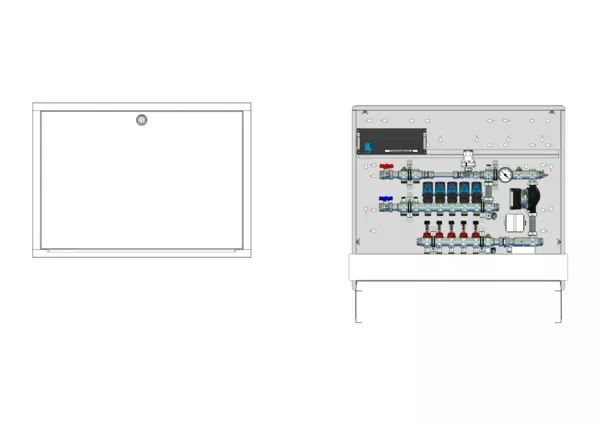 strawa Comfort Kompakt-Regelstation FBR-18-HT2-H-C69-EGO 5 Hkr.,BxHxT: 900 x 775 x 122 mm, Festwert 20-50°C m. Pumpe, 2x HT-Abgang, horz. AG o. WMZ, Verteiler m. DFA min/max + THV f EGO, vorm. EGO-Regel.+Klemml. m. Vorverdr., CUP-Schrank Frontbl RAL9016