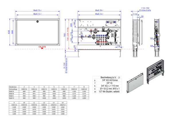 • Tiefe: 110-150 mm