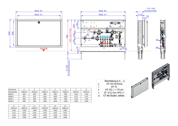 strawa Comfort Kompakt-Regelstation FBR-18-HT2-H-W1-WMZ-C69 12 Hkr.,BxHxT: 1500 x 775 x 122 mm, Festwert 20-50°C m. Pumpe, 2x HT-Abgang, horz. AG m. WMZ, Verteiler m. DFA min/max + THV f EGO, WZ-Strecke TW kalt, Comfort-UP-Schrank m. Frontbl. RAL9016