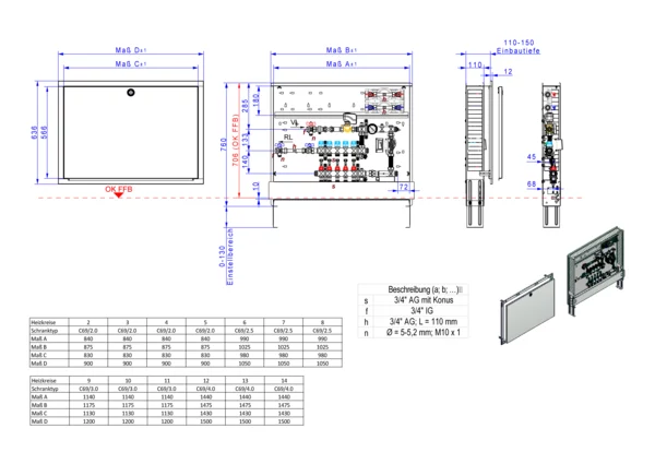 strawa Comfort Mischstation FBM-18-H-W2-WMZ-C69 6 Hkr.,BxHxT: 1050 x 775 x 122 mm, Mischg. m 3P SM mit Pumpe, horz. AG m. WMZ, Verteiler m. DFA min/max + THV für EGO, Wasserzählerstr. TW kalt u. warm, Comfort-UP-Schrank m. Frontbl. RAL 9016