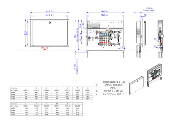 strawa Comfort Mischstation FBM-18-H-WMZ-C69-EGO 2 Hkr.,BxHxT: 900 x 775 x 122 mm, Mischg. m 3P SM m. Pumpe, horz. AG m. WMZ, Verteiler m. DFA min/max+THV f. EGO, m. vorm. EGO-Regelantr. u. Klemml. m. Vorverdr., Comfort-UP-Schrank m. Frontbl. RAL 9016