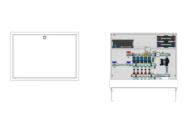 strawa Comfort Mischstation FBM-18-H-W2-WMZ-C69-EGO 5 Hkr.,BxHxT: 900 x 775 x 122 mm, Mischg. m 3P SM m. Pump, hor. AG m. WMZ, Verteil m. DFA min/max+THV f. EGO, vorm. EGO+Klemml. m. Vorverdr., WZ-Strecke TW kalt+warm, CUP-Schrank m. Frontbl. RAL9016