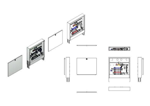 Die Mischstation für Flächenheizung ist mit einer witterungsgeführten Vorlauf-Temperaturregelung (Regler nicht im Lieferumfang) ausgestattet. Die im Aufputzschrank montierte Mischgruppe umfasst eine Umwälzpumpe, einen Edelstahlverteiler mit regulierbaren Durchflussanzeigern und Ventileinsätzen (M30x1,5), sowie eine horizontale Anschlussgarnitur ohne Wärmezählerverrohrung. Es gibt Platzhaltungen für eine Klemmleiste und Stellantriebe.