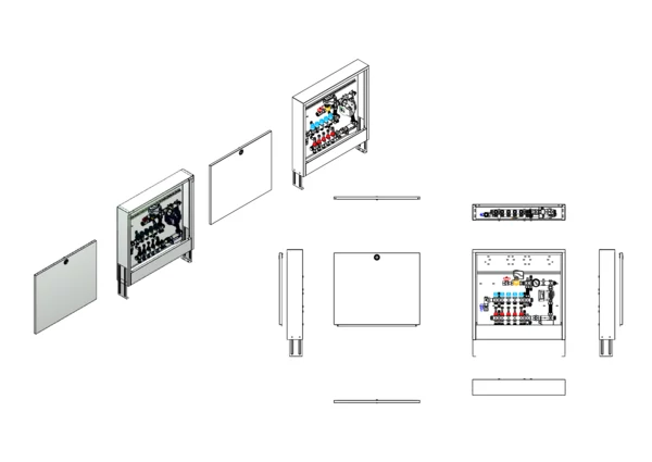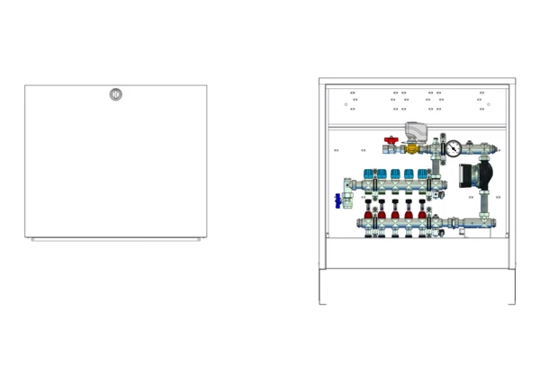 strawa Comfort Mischstation FBM-18-V-CA 5 Hkr.,BxHxT: 732 x 710 x 125 mm, Mischg. m 3P SM mit Pumpe, vert. AG o. WMZ, Verteiler mit DFA min/max + THV f. EGO, Comfort-AP-Schrank in RAL 9016