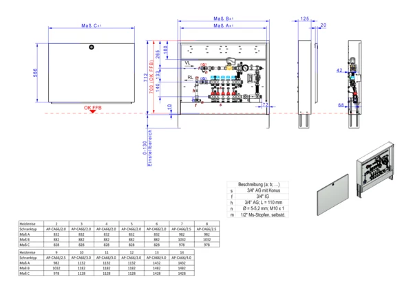 strawa Comfort Mischstation FBM-18-V-WMZ-CA 4 Hkr.,BxHxT: 882 x 710 x 125 mm, Mischg. m 3P SM mit Pumpe, vert. AG m. WMZ, Verteiler mit DFA min/max + THV f. EGO, Comfort-AP-Schrank in RAL 9016