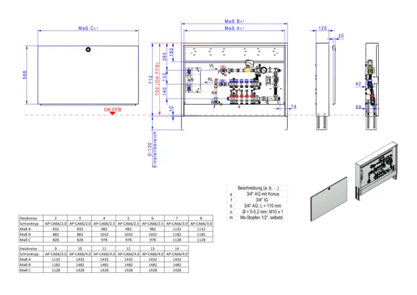 strawa Comfort Mischstation FBM-63-V-W1-WMZ-CA 7 Hkr.,BxHxT: 1182 x 710 x 125 mm, Mischg. m 3P SM mit Pumpe, vert. AG m. WMZ, Verteiler mit DFA 0-3 l/min + THV M30x1,5, WZ-Strecke TW kalt, Comfort-AP-Schrank in RAL 9016