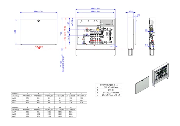 strawa Comfort Mischstation FBM-63-V-WMZ-CA-E 14 Hkr.,BxHxT: 1482 x 710 x 125 mm, Mischg. m 3P SM mit Pumpe, vert. AG m. WMZ, Verteiler mit DFA 0-3 l/min + THV M30x1,5, , vorm. Stellantr. + Klemml. m. Vorverdr., Comfort-AP-Schrank in RAL 9016
