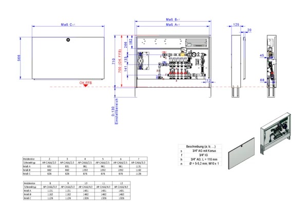 strawa Comfort Mischstation FBM-63-V-W1-WMZ-CA-E 8 Hkr.,BxHxT: 1182 x 710 x 125 mm, Mischg. m 3P SM mit Pumpe, vert. AG m. WMZ, Verteiler mit DFA 0-3 l/min + THV M30x1,5, , vorm. Stellantr. + Klemml. m. Vorverdr., WZ-Strecke TW kalt, CAP-Schrank RAL 9016