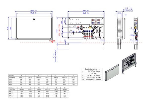 strawa Comfort Kompakt-Mischstation FBM-63-HT1-H-W2-WMZ-C69 11 Hkr.,BxHxT: 1500 x 775 x 122 mm, Mischg. m 3P SM m. Pumpe, 1x HT-Abgang, horz. AG m. WMZ, Verteiler m. DFA 0-3 l/min + THV M30x1,5, WZ-Strecke TW kalt+warm, CUP-Schrank m. Frontbl. RAL9016