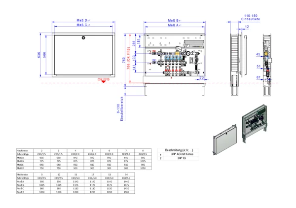 strawa Comfort Kompakt-Mischstation FBM-18-HT2-H-C69-EGO 7 Hkr.,BxHxT: 900 x 775 x 122 mm, Mischg. m 3P SM m. Pumpe, 2x HT-Abgang, horz. AG o. WMZ, Verteiler m. DFA min/max + THV f EGO, vorm. EGO-Regel.+Klemml. m. Vorverdr., CUP-Schrank Frontbl RAL9016