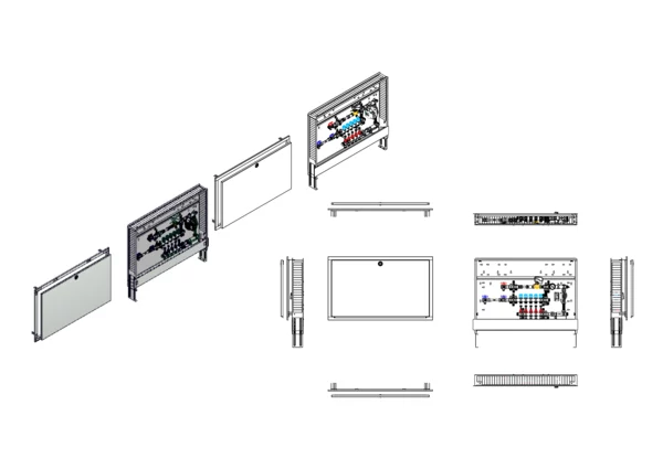 strawa Comfort Kompakt-Mischstation FBM-18-HT2-H-WMZ-C69 5 Hkr.,BxHxT: 1050 x 775 x 122 mm, Mischg. m 3P SM mit Pumpe, 2x Hochtemperaturabgang, horz. AG m. WMZ, Verteiler m. DFA min/max + THV für EGO, Comfort-UP-Schrank m. Frontbl. RAL 9016