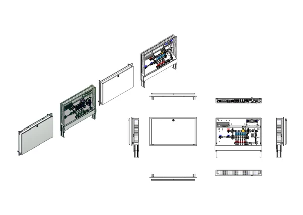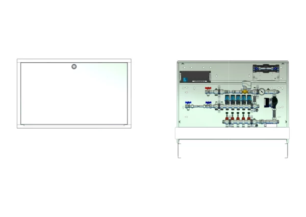 strawa Comfort Kompakt-Mischstation FBM-18-HT2-H-W1-WMZ-C69-EGO 5 Hkr.,BxHxT: 1050x775x122 mm, Mischg. m 3P SM m Pum, 2x HT-Abg, horz. AG m. WMZ, Verteiler m. DFA min/max+THV für EGO, vorm. EGO-Regelantr., WZ-TW kalt, CUP-Schrank RAL9016