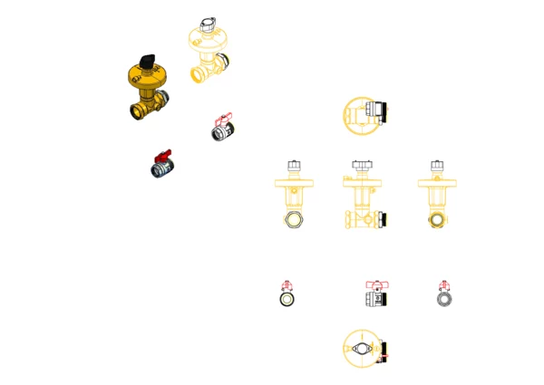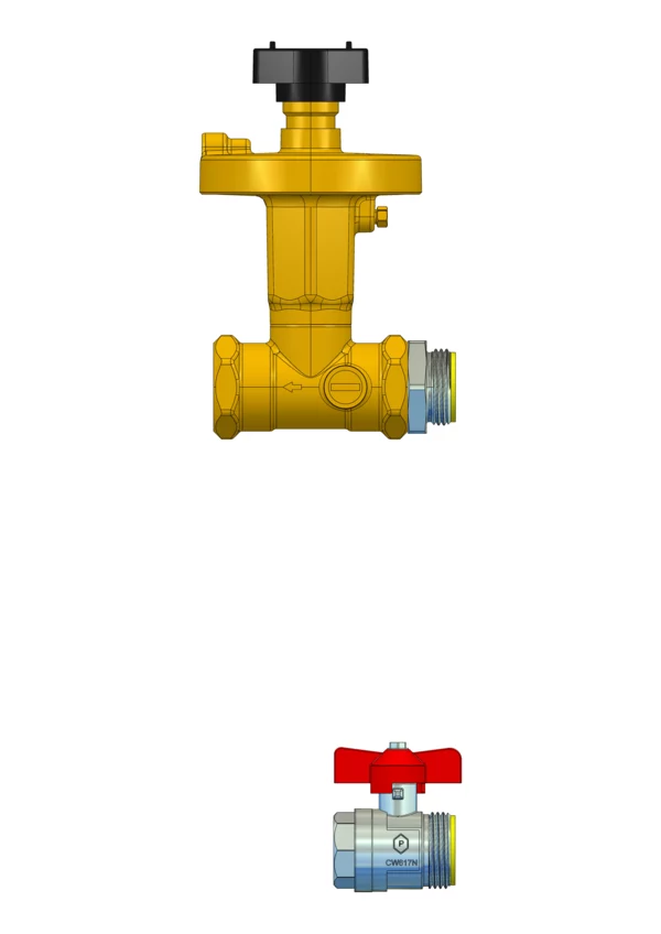 Anschlussgarnitur ohne Wärmezählerverrohrung, bestehend aus Vorlaufkugelhahn und absperrbarem Differenzdruckregler im Rücklauf, für den horizontalen Primäranschluss von Flächenheizungs- und Heizkörper-Anschlussverteilern. Über den Differenzdruckrgler ist ein automatischer hydraulischer Abgleich des Verteilers vom Heizungssystem gegeben.