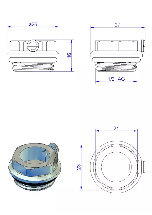 strawa Thermometerzwischenstück 1/2'' für Thermometer 0-80 Grad C,BxHxT: 26x16x27 mm