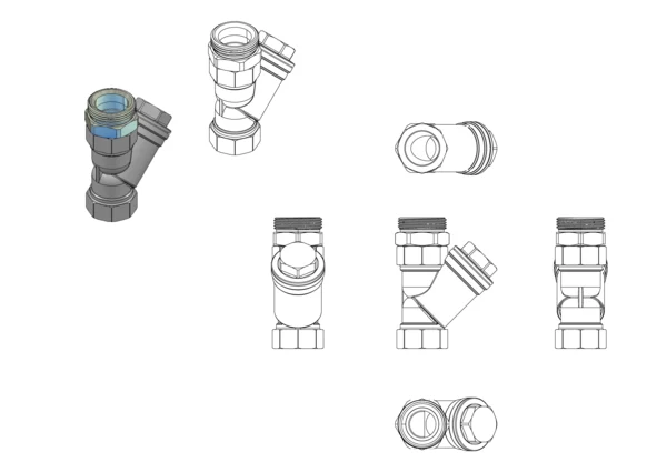 Der Schmutzfänger mit auswechselbarem Sieb aus Nirostahl und Ms-Nippel auf 1" flachdichtend ist passend für den Anschluss am e-class VA Edelstahlverteiler.