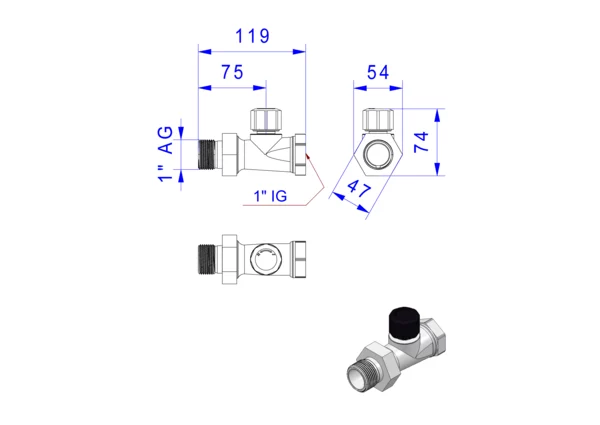 strawa Zonenventil DN 25 Anschluss 1'' IG x 1'' AG,BxHxT: 119 x 74 x 54 mm