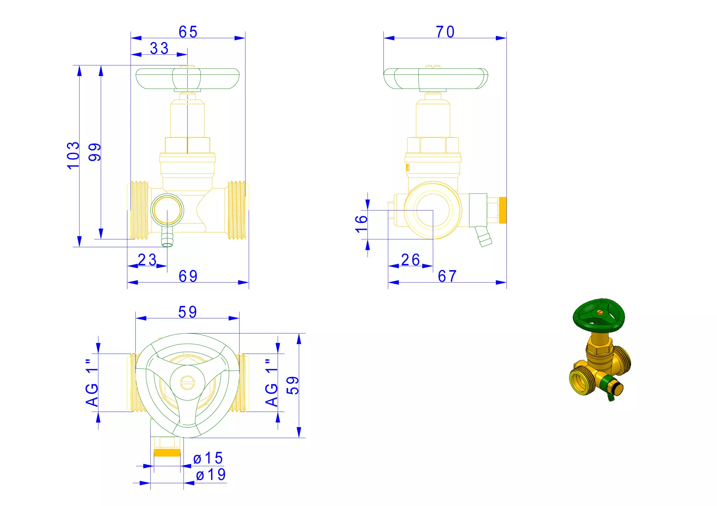 strawa Kolbenventil DN 20 m.Entleerung für HEG-Hauseingangsverteiler