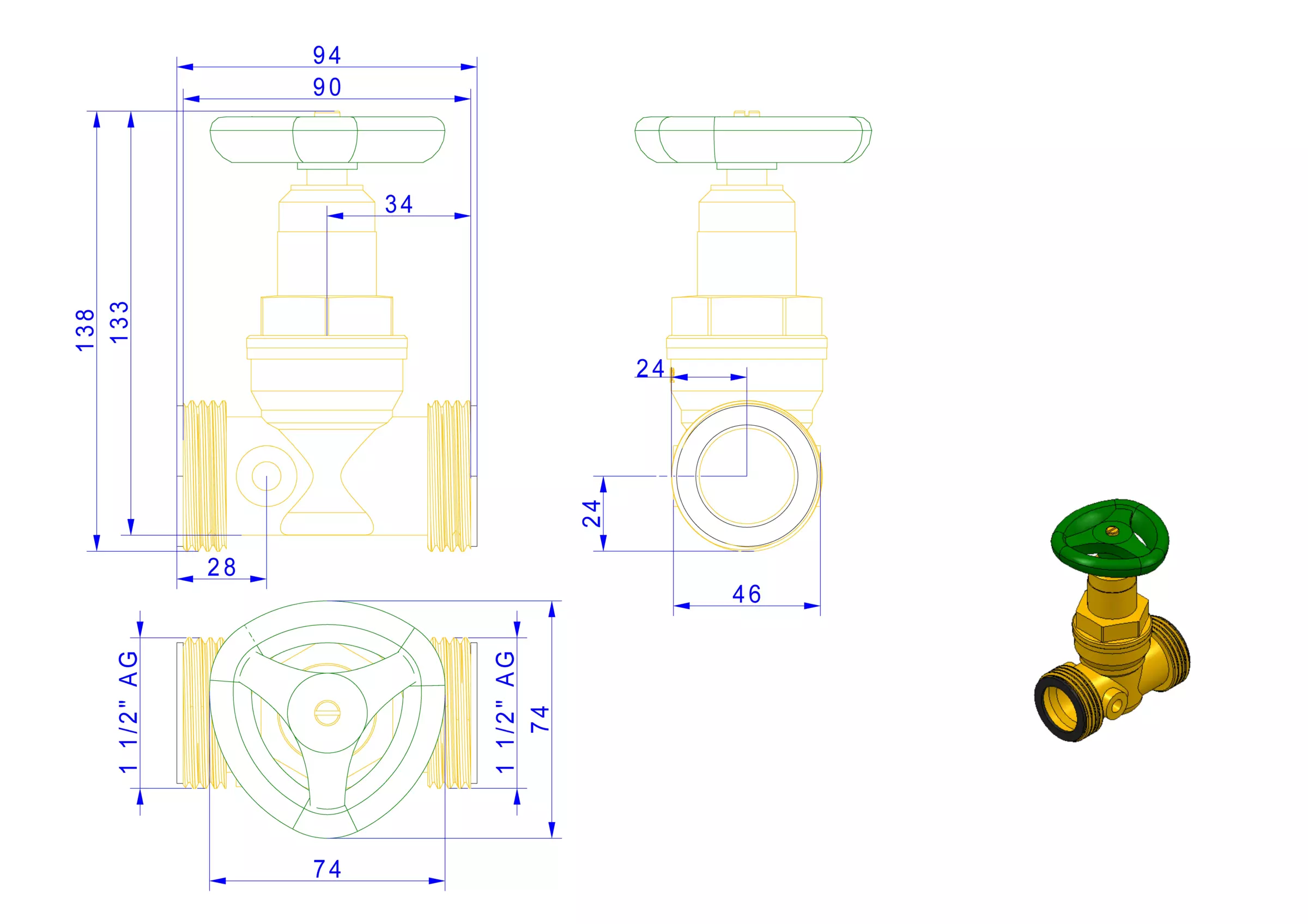 Spindel und/oder Handrad ansteigend nein