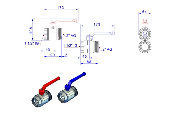 strawa Kugelhahn-Set 1 1/2'' langer Griff,BxHxT: 190 x 70 x 110 mm