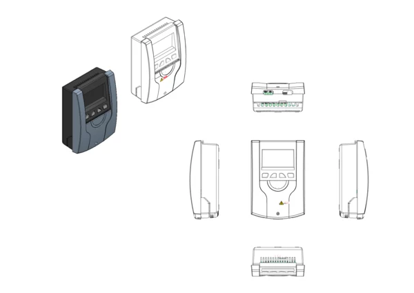 - Zusammenarbeit mit einem Raumthermostaten mit RS‐Kommunikation oder Zweipunkt‐Raumthermostaten