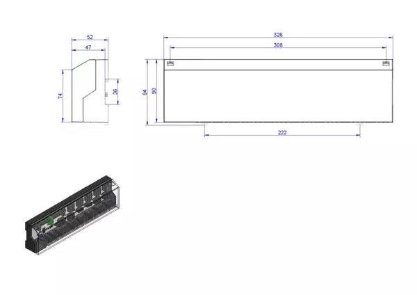 Artikelabmessung: B x H x T: 327 x 90 x 52 mm