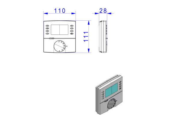 strawa Funk-Uhrenthermostat AP Heizen / Kühlen-Digital Aufputz,BxHxT: 110 x 111 x 26 mm
