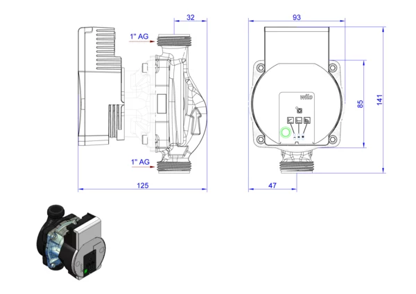 strawa Pumpe Wilo Para 15-130/6-43/SC-12,BxHxT: 93 x 141 x 125 mm