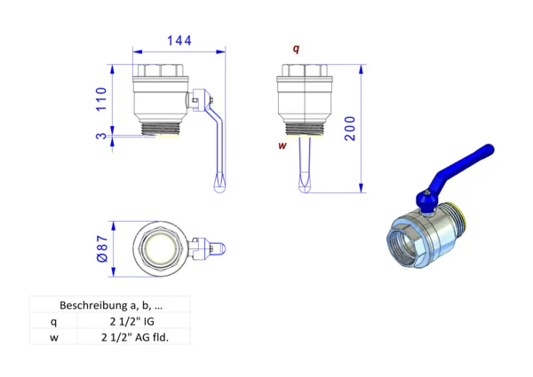 strawa KH 2“IG x 2“AG flachdichtend, langen Handgriff blau