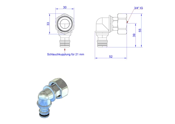 3/4''ÜW mit Schlauchkupplung für 21,0 mm