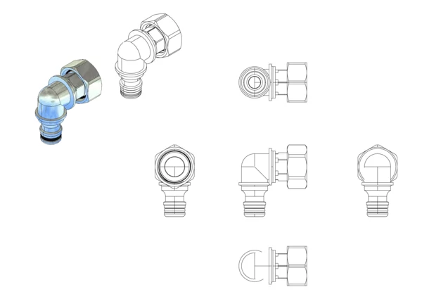 Montagewinkel-Set zum leichteren Füllen und Spülen an Flächenheizungsverteilern mit geraden Entleerungsstutzen
