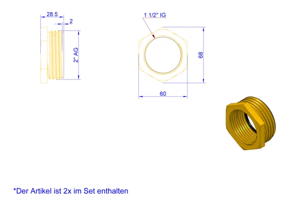 strawa AS-Set 1 1/2''IG x 2''AG fld. für Industrie- und Soleverteiler