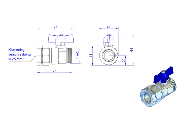 strawa Kugelhahn blau 1'' AG x KLV 25