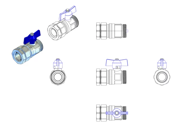 strawa Kugelhahn blau 1'' AG x KLV 25 für Industrie- und Soleverteiler