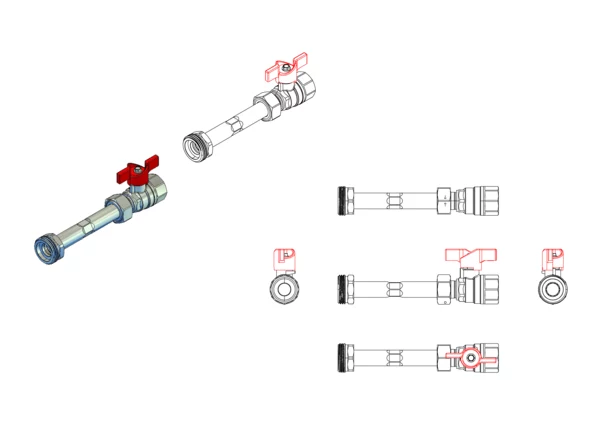 Absperrung und Wasserzählerverrohrung 3/4" mit rotem Griff für Sanitärverteiler e-class 22 VA